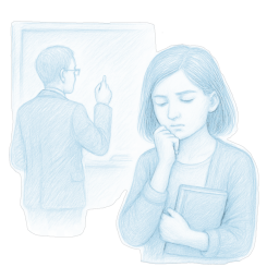 He's a lecturer. I'm a graduate student. Not his direct student, but we often cross paths: in the department, in the corridor, at conferences. Sometimes I feel like something invisible is happening between us — a glance held a bit too long, a fleeting touch of fingers when we pass papers. Once we left the lecture hall together, and he said he loves the silence in the university after five — and since then, I've stayed late. Just to be nearby. Or maybe to bump into him again.